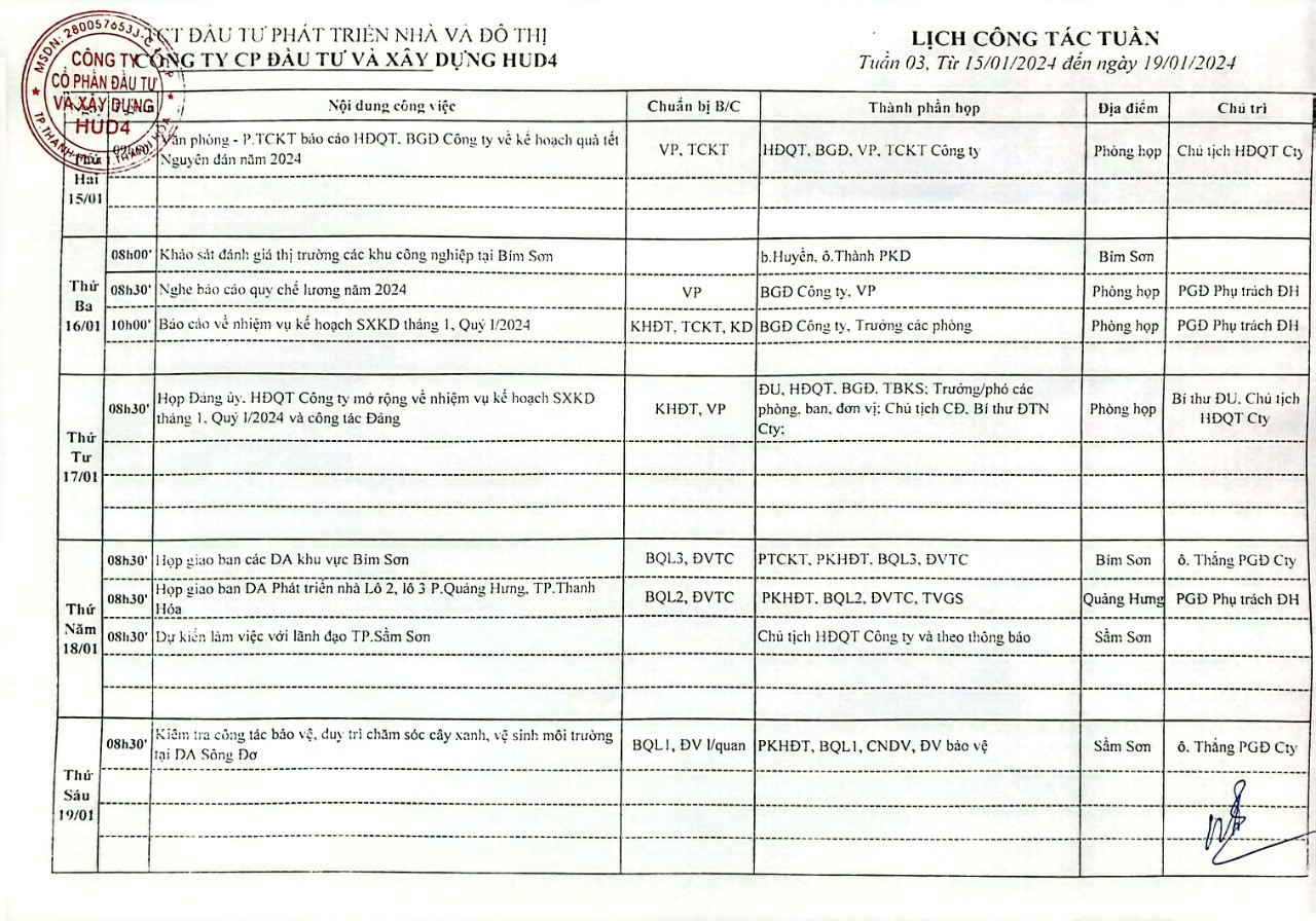 Lịch công tác tuần 04