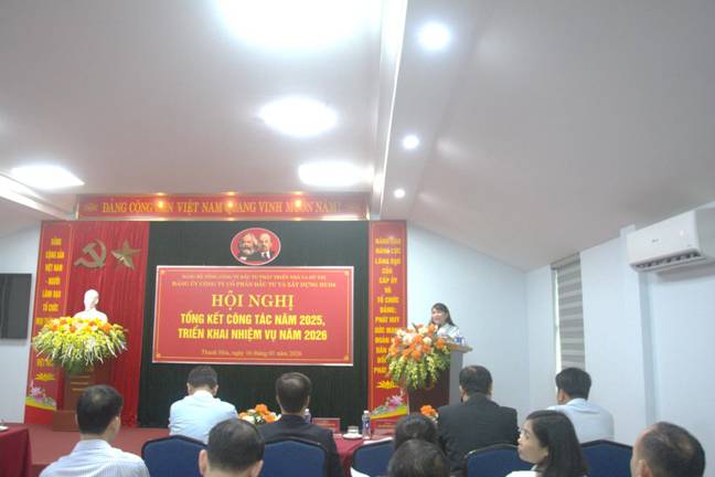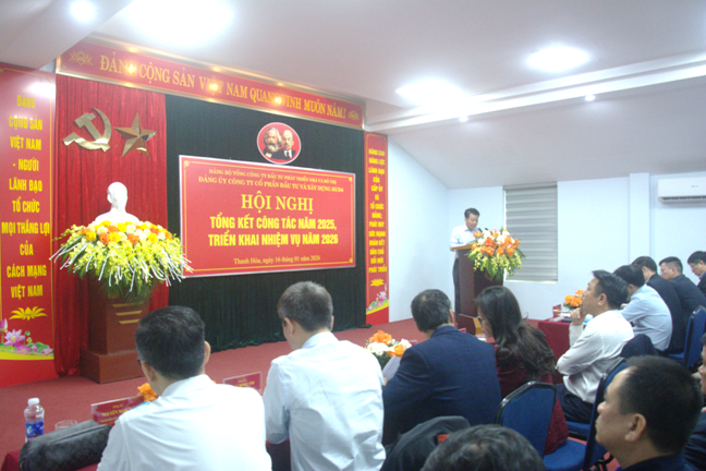 Báo cáo tại Hội nghị, đồng chí Nguyễn Việt Hùng - Phó Bí thư Đảng ủy, CNUBKT Đảng ủy, TV HĐQT, Phó giám đốc Công ty đã trình bày kết quả công tác xây dựng Đảng năm 2025 và nhiệm vụ năm 2026. Theo đó, Đảng ủy Công ty đã tập trung lãnh đạo, chỉ đạo thực hiện đồng bộ các mặt công tác xây dựng Đảng; giữ vững ổn định tư tưởng, tăng cường kỷ cương, kỷ luật; gắn công tác xây dựng Đảng với thực hiện nhiệm vụ chính trị và sản xuất kinh doanh. Công tác tổ chức xây dựng Đảng, kiểm tra, giám sát, công tác cán bộ, công tác dân vận và hoạt động của các tổ chức đoàn thể tiếp tục được triển khai nghiêm túc, nền nếp, góp phần nâng cao năng lực lãnh đạo của tổ chức đảng trong toàn Công ty.